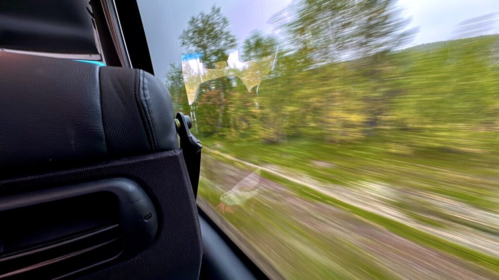 Aamulla heräsin ja pistin romut nopsaan kasaan. Jäljellä oli reippaasti alle kilometri polun alkuun, mutta matka olisi kivikkoista polkua jyrkästi alaspäin. Aamuhämärässä taistelin itseni kylälle ja kävin munkkikahvilla kylätalolla, mistä bussikin lähtisi. Sitten olikin loppupäiväksi luvassa bussissa istumista, sillä Rovaniemellä olisin vasta klo 1720.