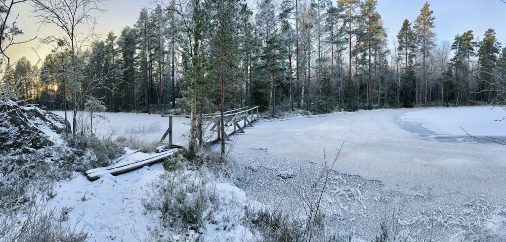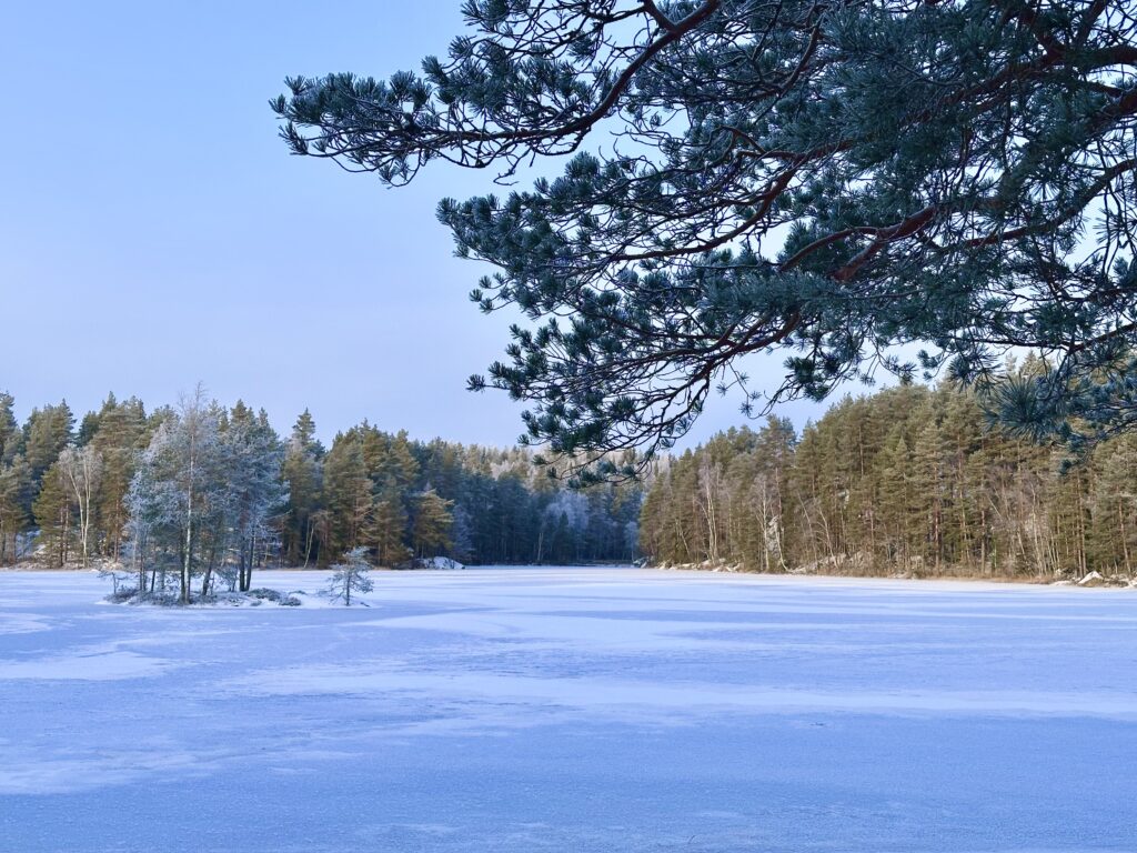 Näitä mahdollisia talven ”erikoisreissuja” pohtien, lähdin Nokialle lähimetsiin juomaan teet ja paistelemaan pari uudenvuoden aatosta jäänyttä nakkia. Pakkasta oli noin -16, joka on itselle jo mukavuusrajan ylittävä. Vaikka keskivartalossa lämmittävä rasvakerros onkin, en silti ikinä ole tykännyt kunnon pakkaskeleistä. Pukeminen on vaikeaa, vaatetta on paljon, niitä pitää vekslata jatkuvasti. Nakkasin retkituolin ja risukeittimen reppuun ja suuntasin Porrasjärven rannoille nauttimaan pienen hetken taivaalla olevasta auringosta.
