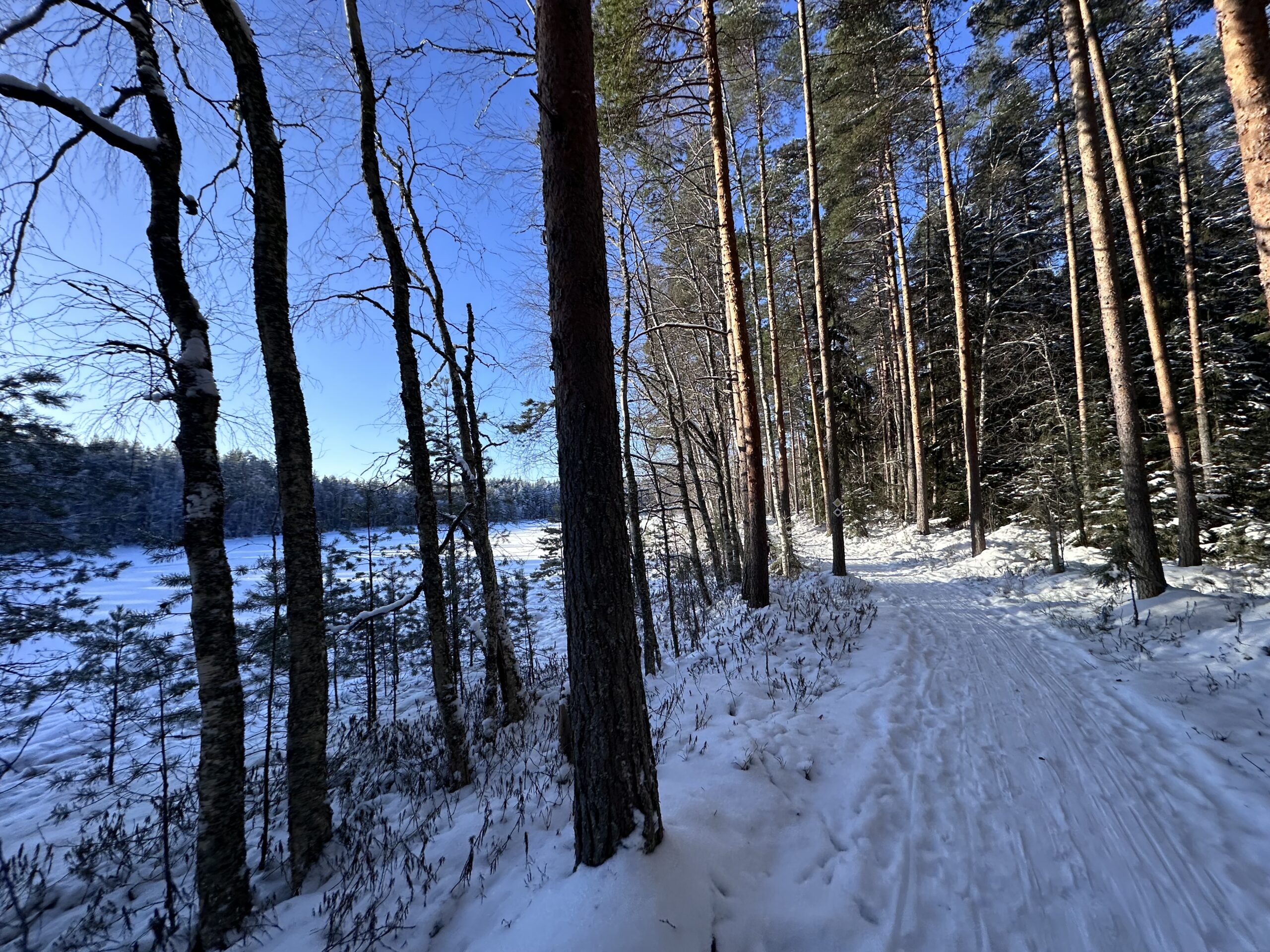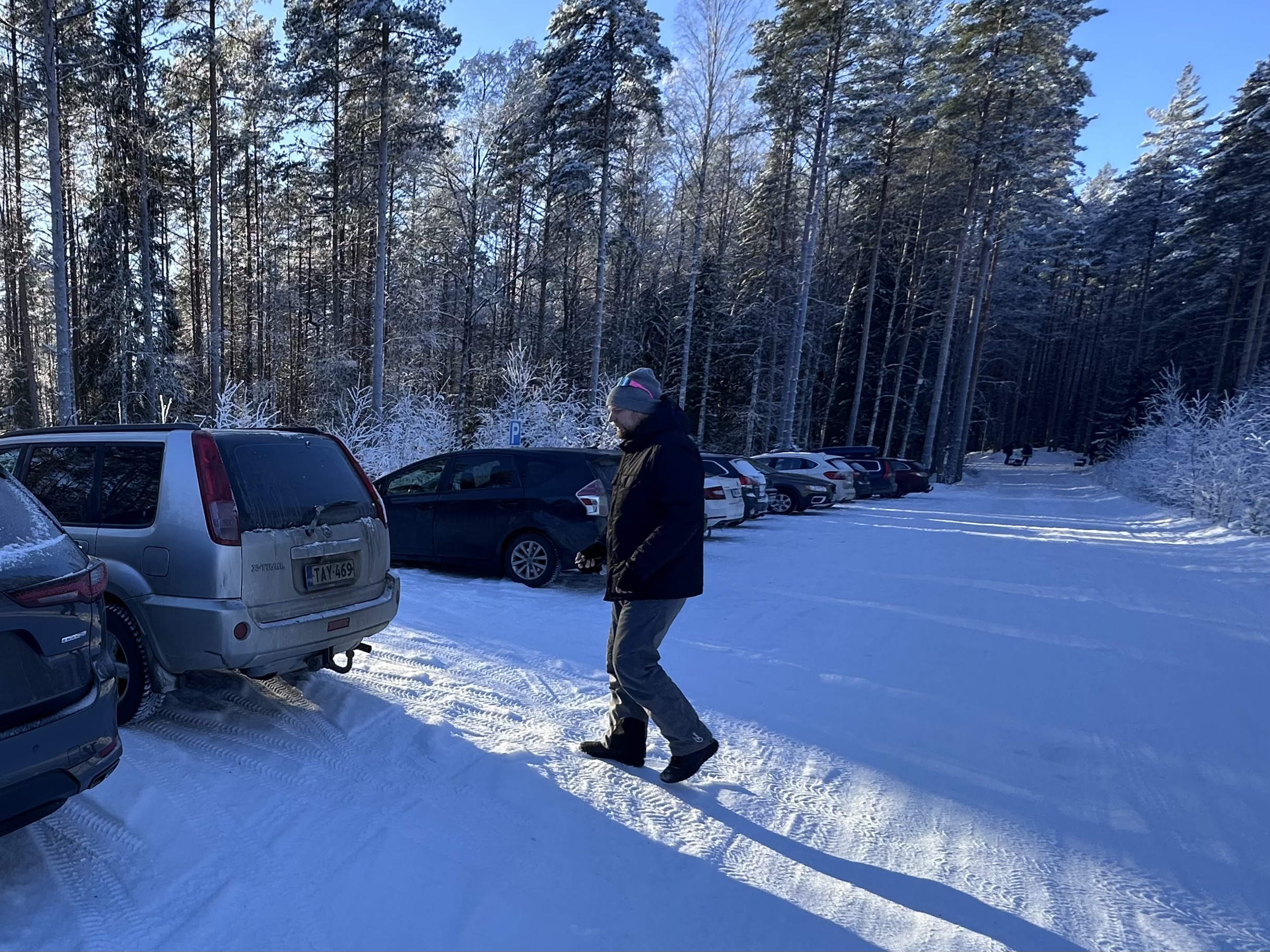 Aamulla pistettiin romut kasaan ja tehtiin hyvin lyhkänen lenkki lammen ympäri. Keli oli yhtä hyvä kuin edellisenäkin päivänä ja sinänsä ulkoilukeli oli mitä mainioin. Parkkipaikalle päästyämme, ei sielä vähemmän yllättäen ollut enää kuin yksi auto meidän lisäksi, joten yöksi ei varmaan ollut näille main kukaan muu jäänytkään.