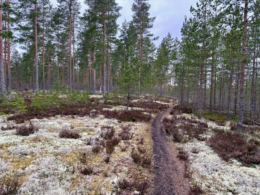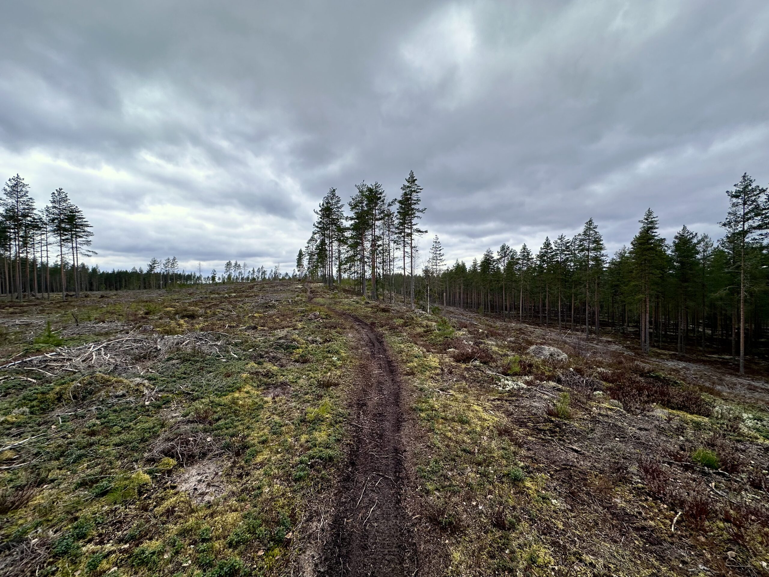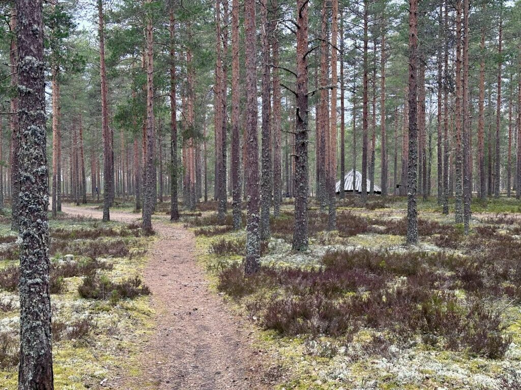 Lähdin kävelemään luoteeseen kohti Vatulanharjun kotaa, jonne matkaa olisi vain muutama kilometri. Maasto oli tuttuun tapaa harvaa mäntykangasta ja polku kulki pitkän matkaa hakkuuaukion keskellä. Polku oli tasaista ja helppokulkuista, mutta karttaa sai kyllä vilkuilla, sillä erilaisia polkuja ja uria meni kymmeniä aivan joka suuntaan. Jossain polun puolen välin jälkeen mentiin nuoreen matalaan männikköön, josta pienen hiekkakuopan jälkeen käännyttiin oikealle ja Vatulanharjun kota olikin kohta näkösällä.