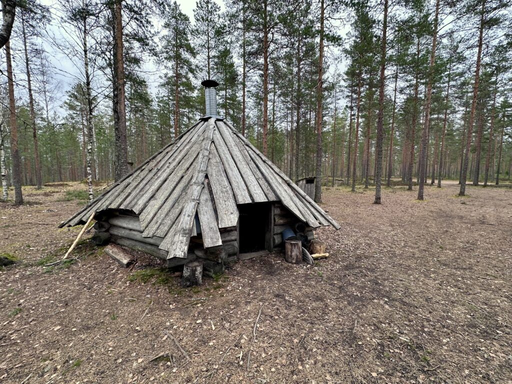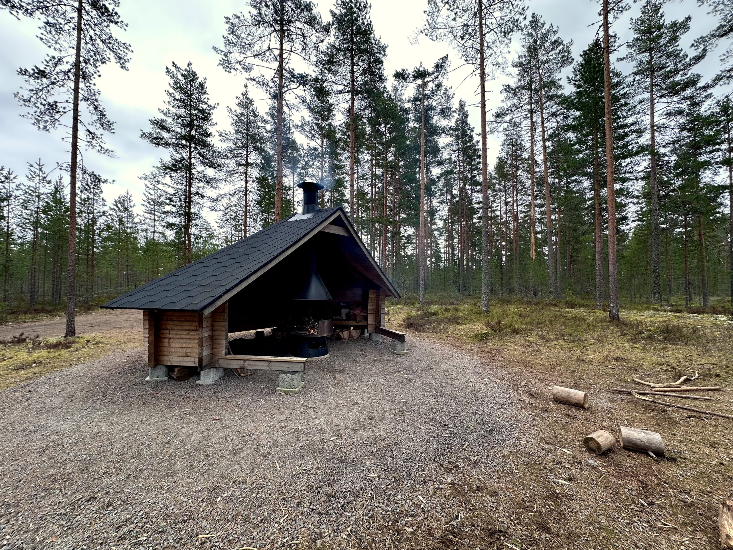 Ajoa oli mukavasti alta tunnin verran ja loppuosa vielä mukavaa 80kmh tietä keskellä ei mitään. Hiekkatietä sai mennä useamman kilometrin ja paikoitellen ajo oli melkoista pomppukeppimenoa. Onneksi vain muutamissa kohdissa tarvi hidastaa kävelyvauhtiin monttujen takia, joten autokin säilyi hengissä perille. Vedin parkkiin Ulvaanharjun kodalle ja ensimmäisenä olikin kurkistettava sisään. Ovi oli noin 120cm korkea ja koko koppi aivan pimeä. Tiesin siis, että tähän ei ainakaan kannata palatessa jäädä päivän kokkaussessiota vetämään.