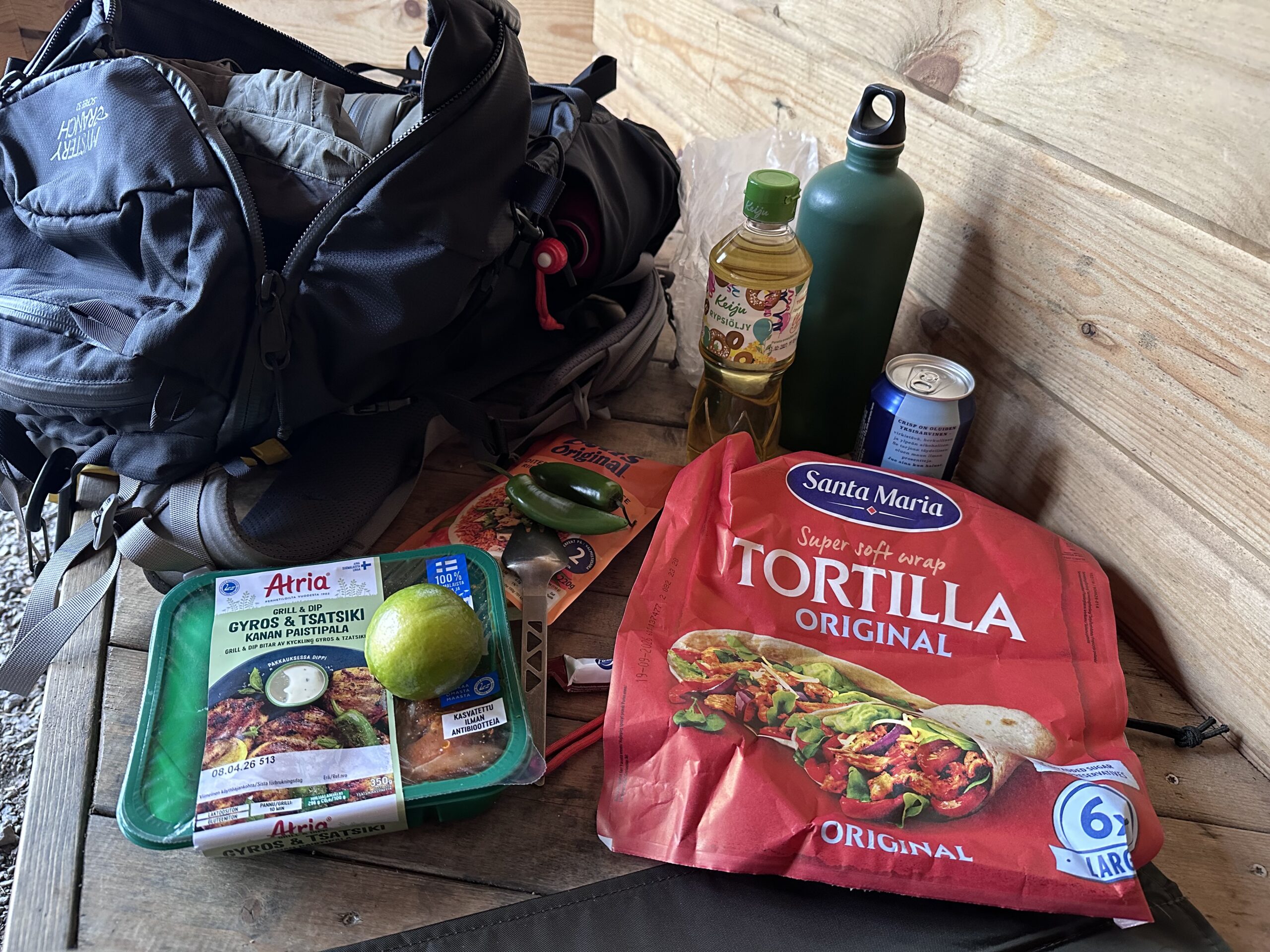 Perään vielä kuppi teetä ja olinkin valmis lähtemään. Kylmä tuuli puhalsi aivan jatkuvasti ja sammunut risunuotio ei enää auttanut sitäkään vähää. Onneksi olin ottanut vettä 1+2l mukaan, sillä näillä leveyksillä vettä ei ihan niin joka nurkasta löydykään. Onneksi pannut ja kipot sai siis järkevästi tiskattua.